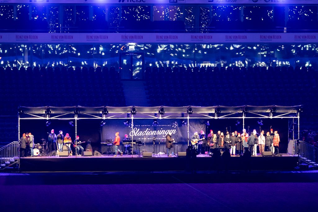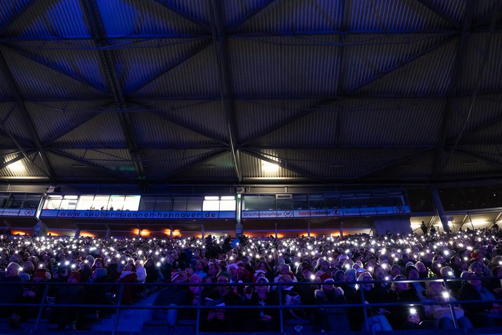 Als tech­ni­scher Full-​Service-​Dienstleister für Büh­nen, Rig­ging, Licht­tech­nik, Ton­tech­nik und Video­re­gie, konn­ten wir in Zusam­men­ar­beit mit Orga­ni­sa­tor Rai­ner Müller-​Brandes (Stadt­su­per­in­ten­dent Han­no­ver) und dem Manage­ment von Han­no­ver 96, eine wirk­lich gelun­ge­ne Ver­an­stal­tung mit vie­len Gänsehaut-​Momenten erle­ben. Dass das Publi­kum der eigent­li­che Star des Abends ist, macht das Sta­di­on­s­in­gen zu etwas Beson­de­rem – die besinn­li­che Atmo­sphä­re geht auch an unse­ren Tech­ni­ke­rin­nen und Tech­ni­kern hin­ter den Kulis­sen nicht spur­los vorbei.