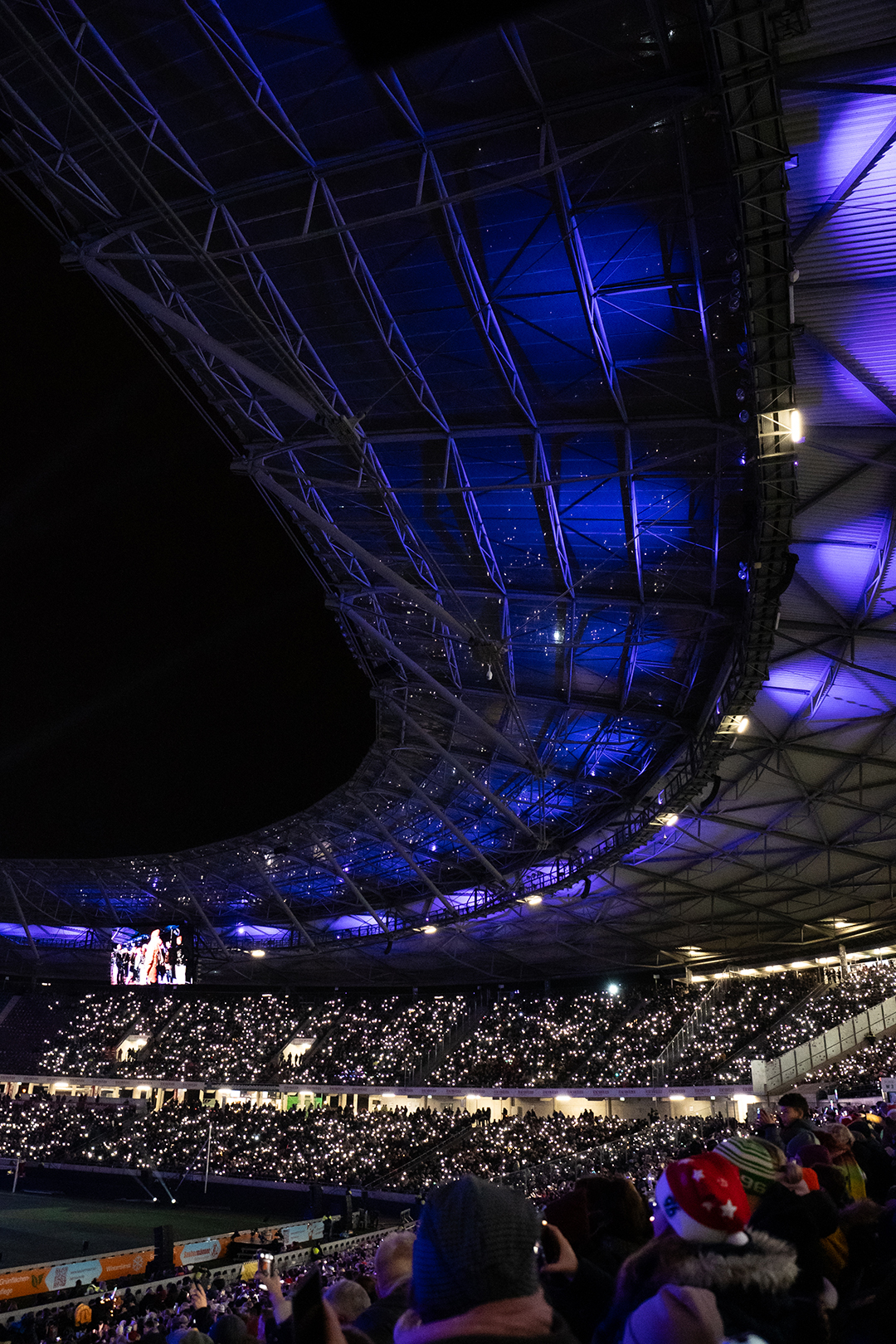 Das vor­weih­nacht­li­che Sta­di­on­s­in­gen in Han­no­ver hat seit der ers­ten Ver­an­stal­tung in 2022 jedes Jahr Besucher*innen-Rekorde gebro­chen, sodass sich das Zuschau­er­feld inzwi­schen bis in die Kur­ven aus­brei­tet. Des­halb wur­de in die­sem Jahr ein neu­es Beschal­lungs­kon­zept benötigt