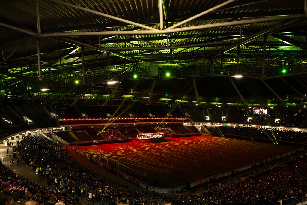Um allen der 31.500 Anwe­sen­den einen opti­ma­len Hör­ge­nuss und frei­en Blick auf die Büh­ne zu ermög­li­chen, wur­de die Haupt-​Bühne und das Bläser*innen-Ensemble die­ses Jahr das ers­te mal auf der gegen­über­lie­gen­den Sta­di­on­sei­te plat­ziert; durch zwei frei­ste­hen­de Satel­li­ten­büh­nen direkt vor den Zuschau­er­rei­hen, blie­ben die Sprecher*innen und Geschichten-Erzähler*innen wei­ter­hin ganz nah am Publi­kum. Durch die­ses schö­ne Kon­zept wur­de das gesam­te Sta­di­on für die Ver­an­stal­tung erschlos­sen und somit konn­te auch unse­re beein­dru­cken­de Licht­show viel mehr Stim­mung erzeugen.